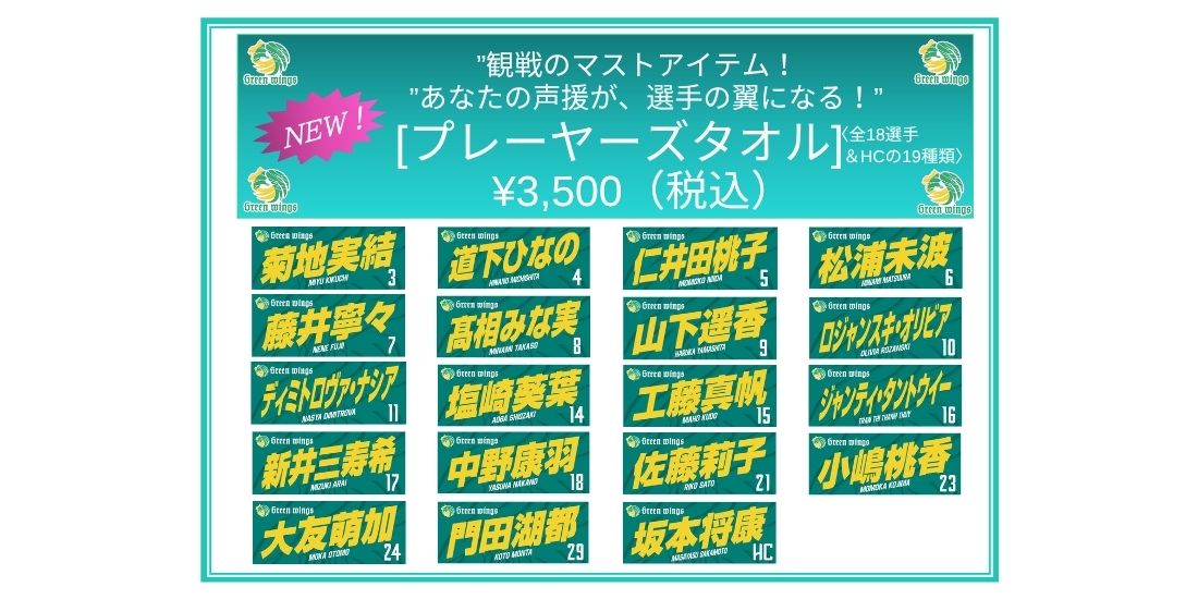 | 名称 | 群馬グリーンウイングス公式 プレイヤーズタオル |